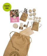 - A perfectly sized natural jute drawstring bag to keep your Fairy Garden Kit safe and ready for magical adventures.