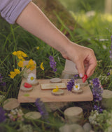 - Six tiny wooden plates for serving imaginary treats (fairies are famously fond of flower petal pie).