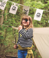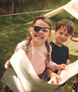 A pirate eye-patch, carefully made by us in soft felt with elastic strap for a playful pirate look!