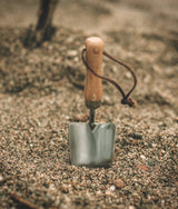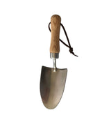 A beautiful trowel with a high quality stainless steel head. The handle is made from ash wood and contoured for a comfortable grip. Proportionally smaller and lighter than an adult's hand trowel for little hands.